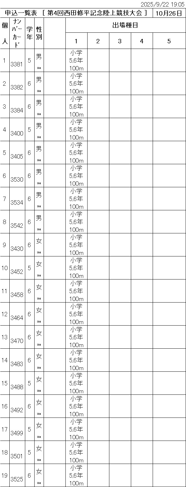 80mH(5,6年共通)、走高跳(5,6年共通)、走幅跳(4,5,6年)